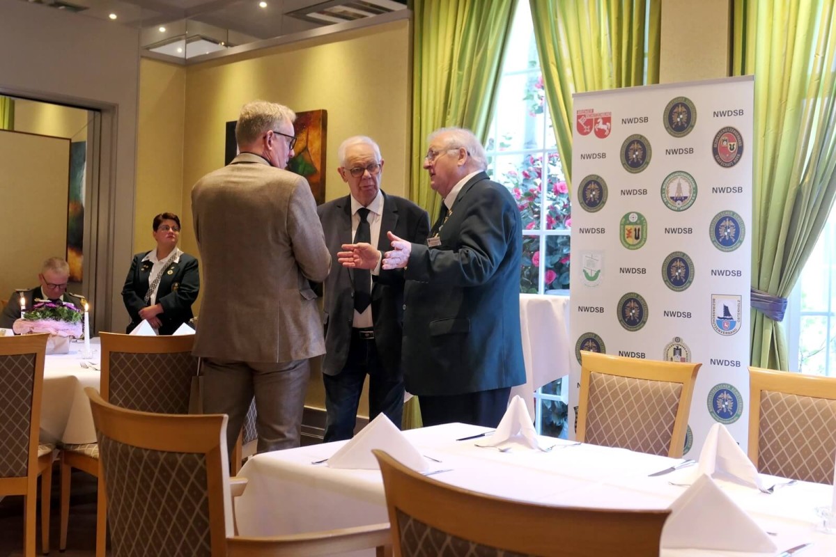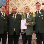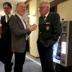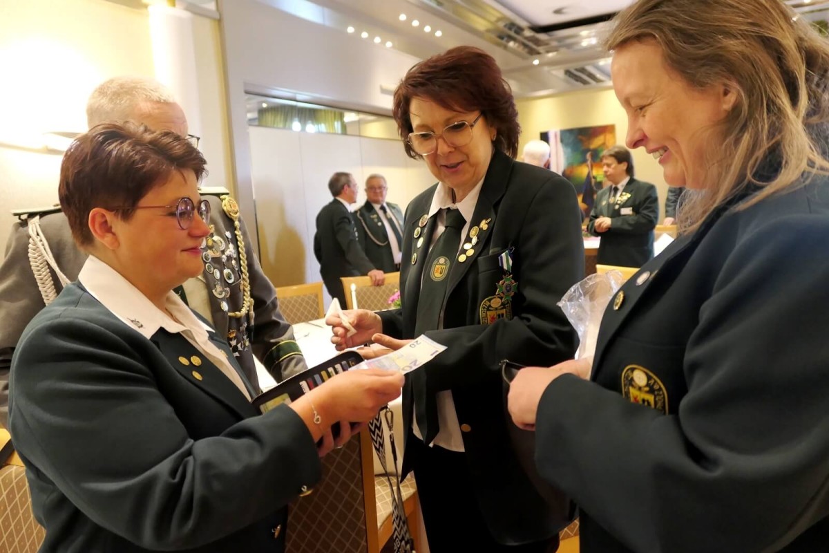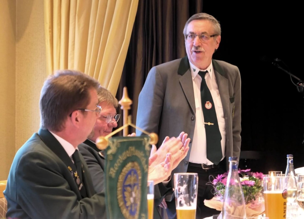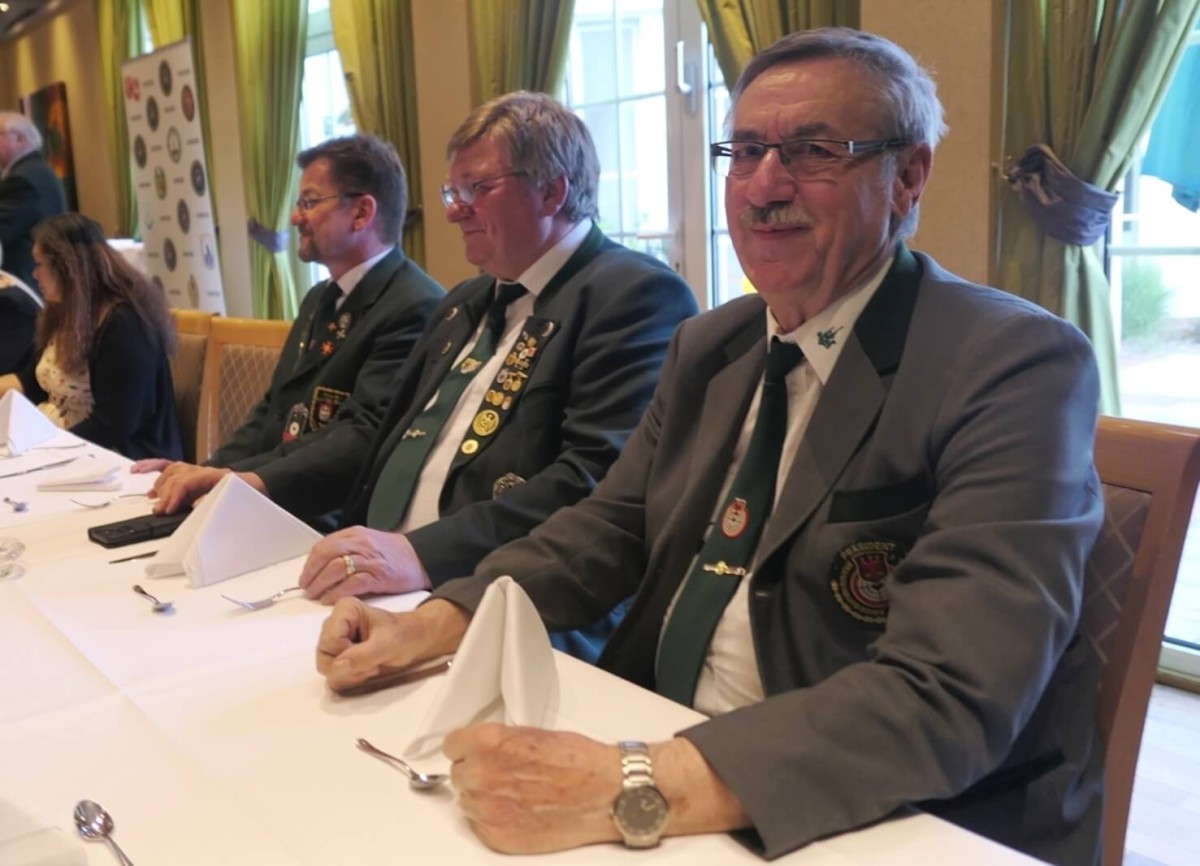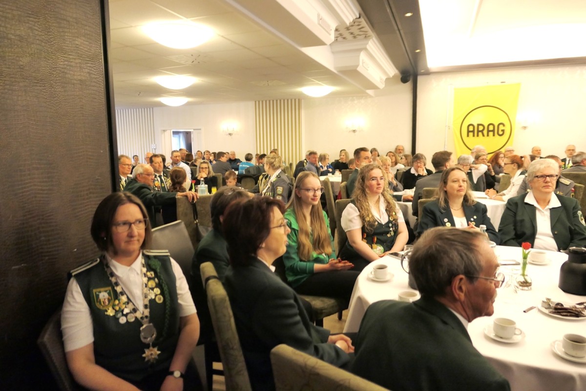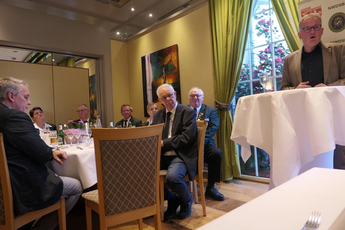 Als letzte wurden die Organisatoren des 72. Landesschützentages auf die "Bühne" gebeten und geehrt. Sie alle erhielten als eine Erinnerung und Dank für ihre Arbeit, einen Trinkbecher mit NWDSB-Emblem versehen vom Geschäftsführer Volker Kächele. Von links: Bezirkspräsident Karl-Friedrich Scharrelmann, Ulrich Ehlers, Friedel Kelkenberg, Thomas Nowak, Britta Löhmann, Lena Löhmann, Bianca Meyer, Marianne Vallan u. Siegfried Brockmann.