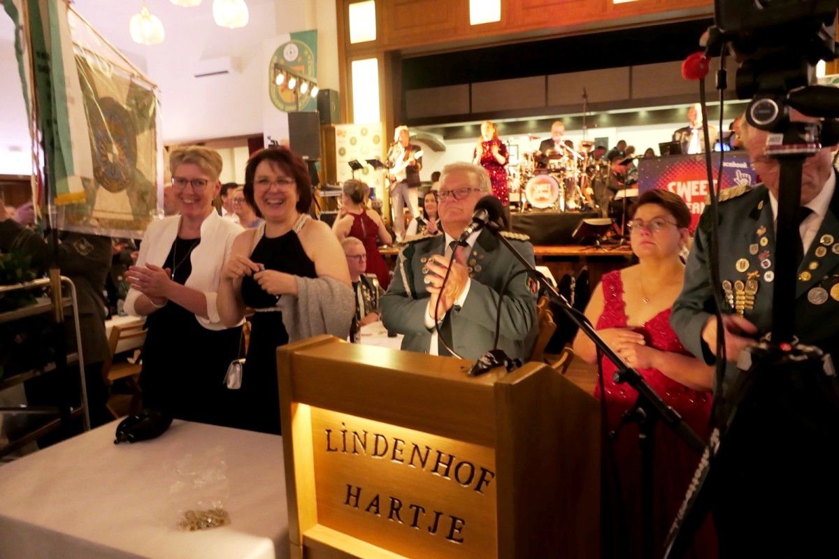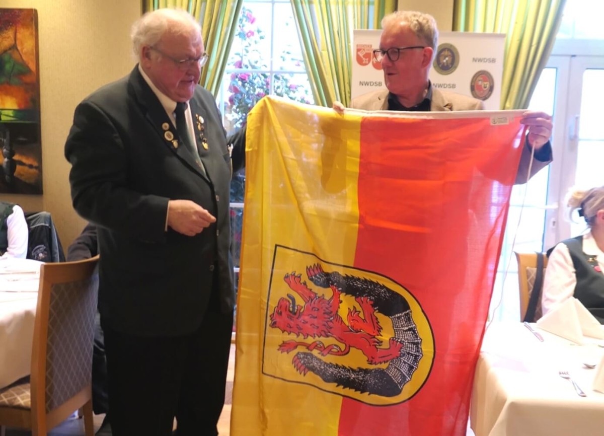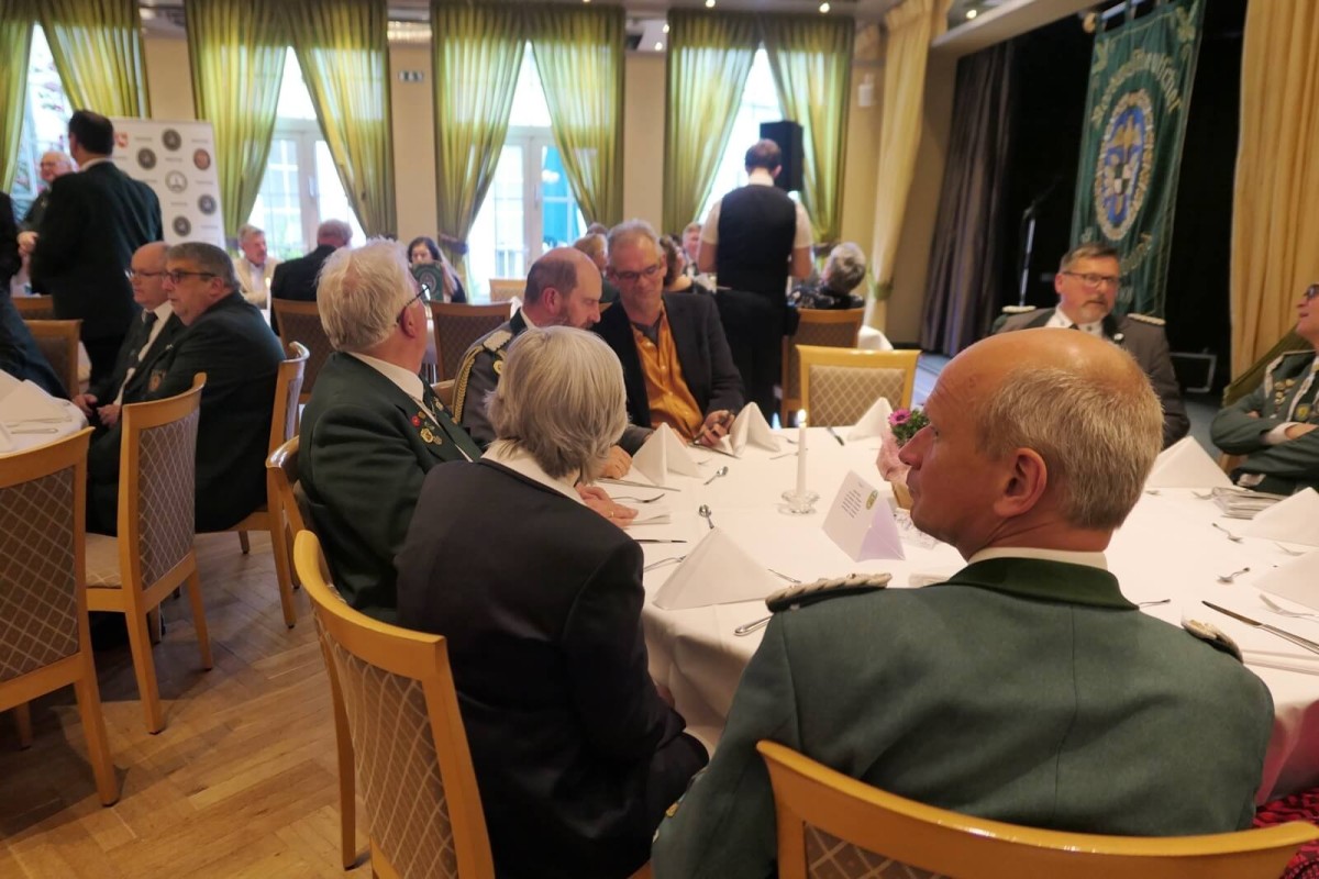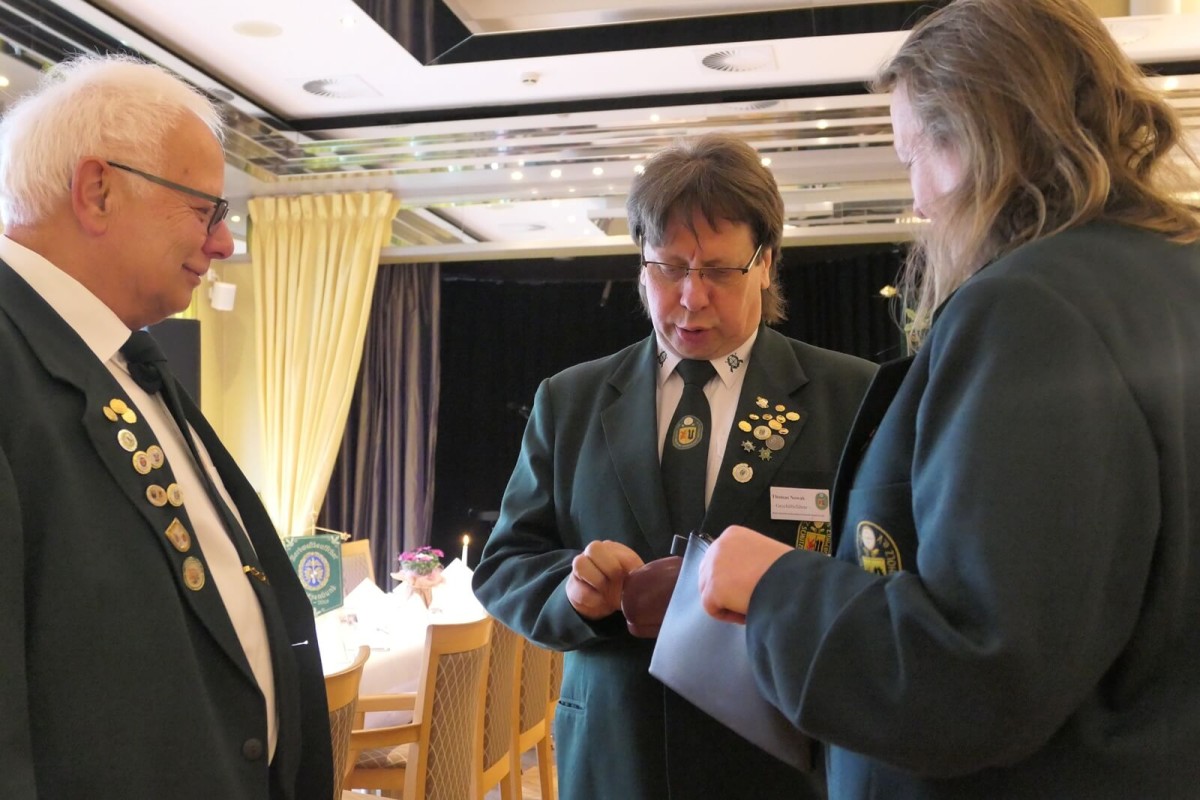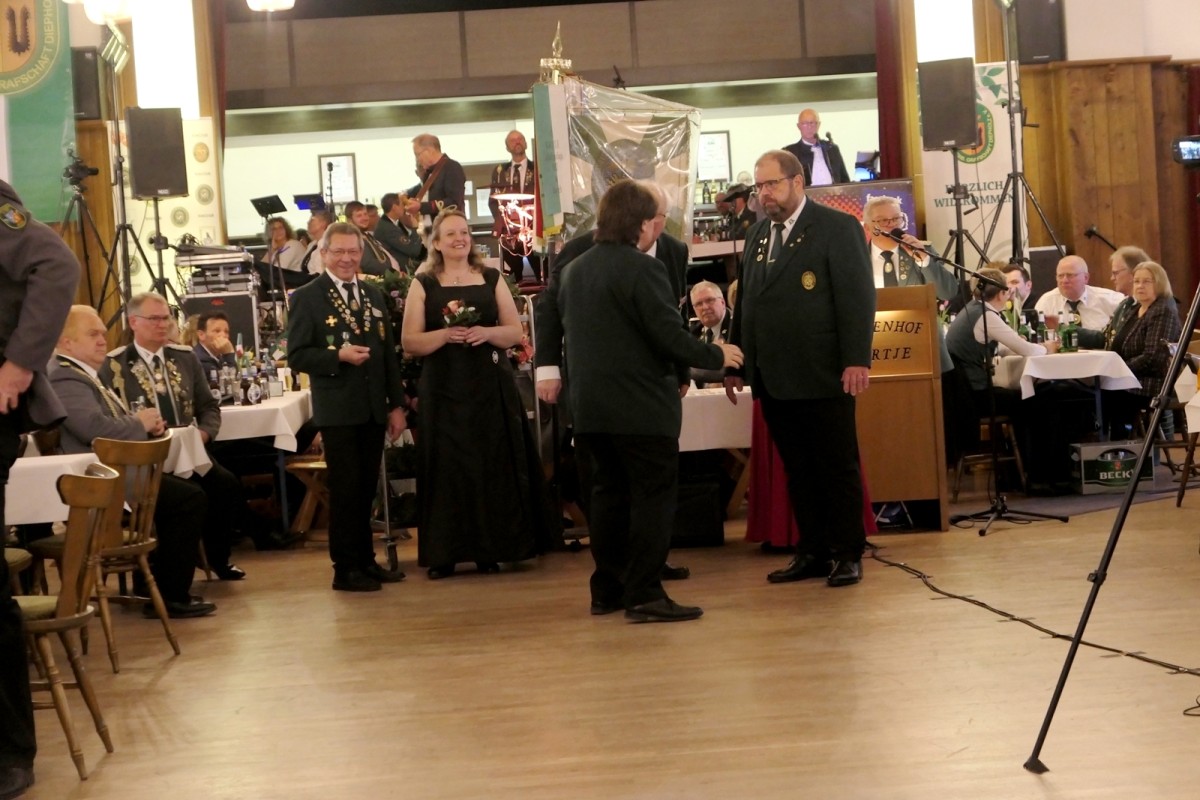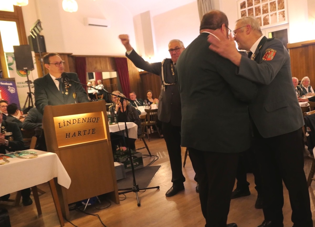 Als letzte wurden die Organisatoren des 72. Landesschützentages auf die "Bühne" gebeten und geehrt. Sie alle erhielten als eine Erinnerung und Dank für ihre Arbeit, einen Trinkbecher mit NWDSB-Emblem versehen vom Geschäftsführer Volker Kächele. Von links: Bezirkspräsident Karl-Friedrich Scharrelmann, Ulrich Ehlers, Friedel Kelkenberg, Thomas Nowak, Britta Löhmann, Lena Löhmann, Bianca Meyer, Marianne Vallan u. Siegfried Brockmann.