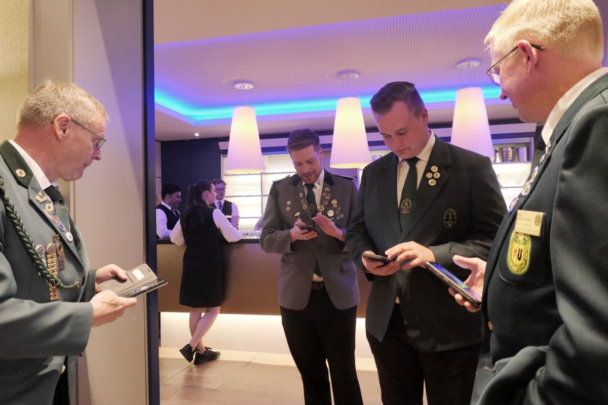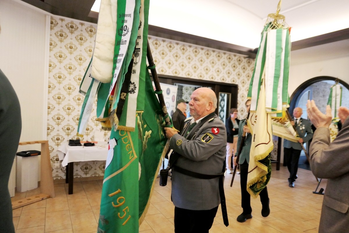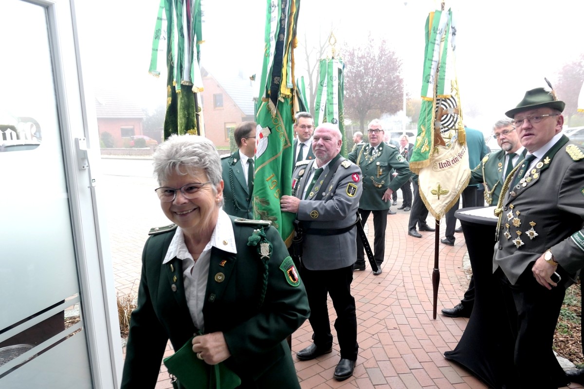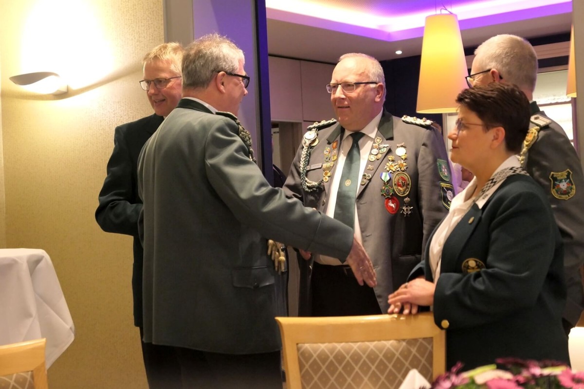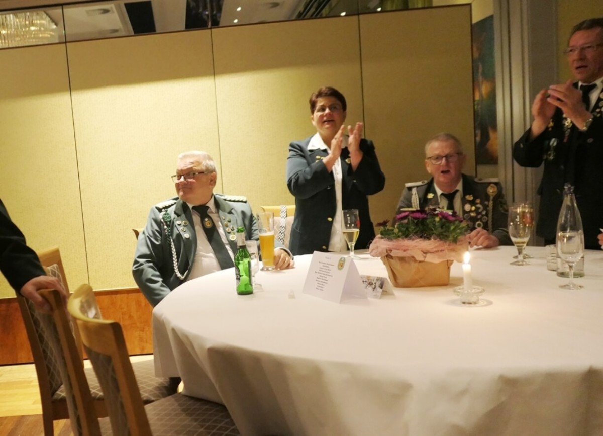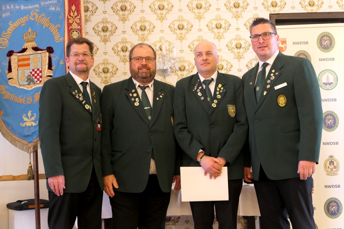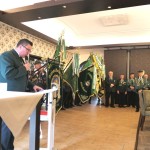 Als letzte wurden die Organisatoren des 72. Landesschützentages auf die "Bühne" gebeten und geehrt. Sie alle erhielten als eine Erinnerung und Dank für ihre Arbeit, einen Trinkbecher mit NWDSB-Emblem versehen vom Geschäftsführer Volker Kächele. Von links: Bezirkspräsident Karl-Friedrich Scharrelmann, Ulrich Ehlers, Friedel Kelkenberg, Thomas Nowak, Britta Löhmann, Lena Löhmann, Bianca Meyer, Marianne Vallan u. Siegfried Brockmann.