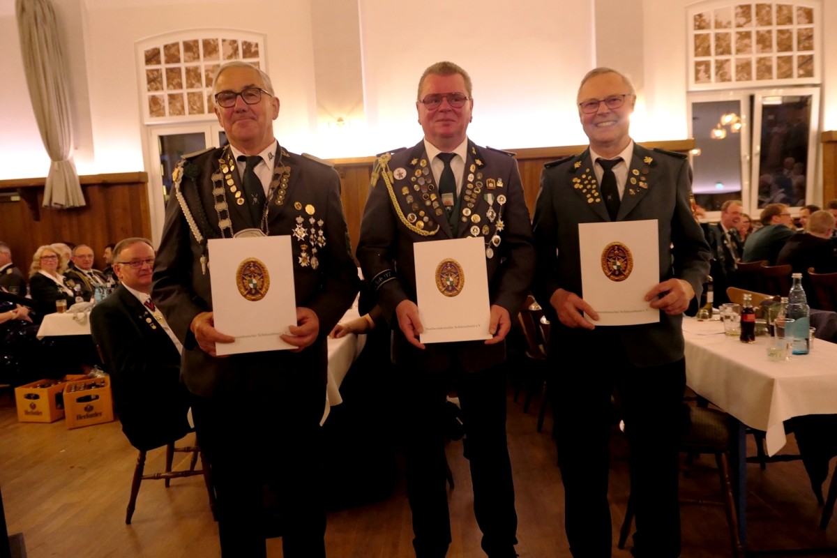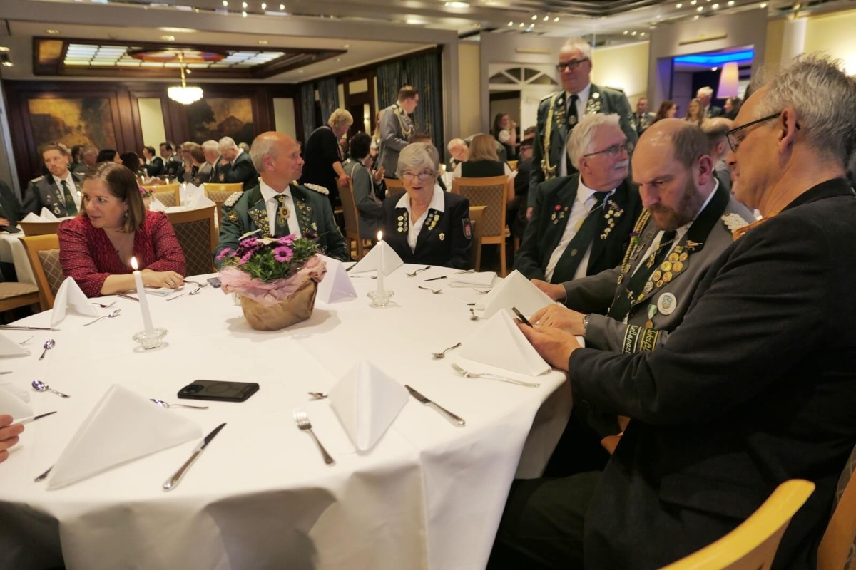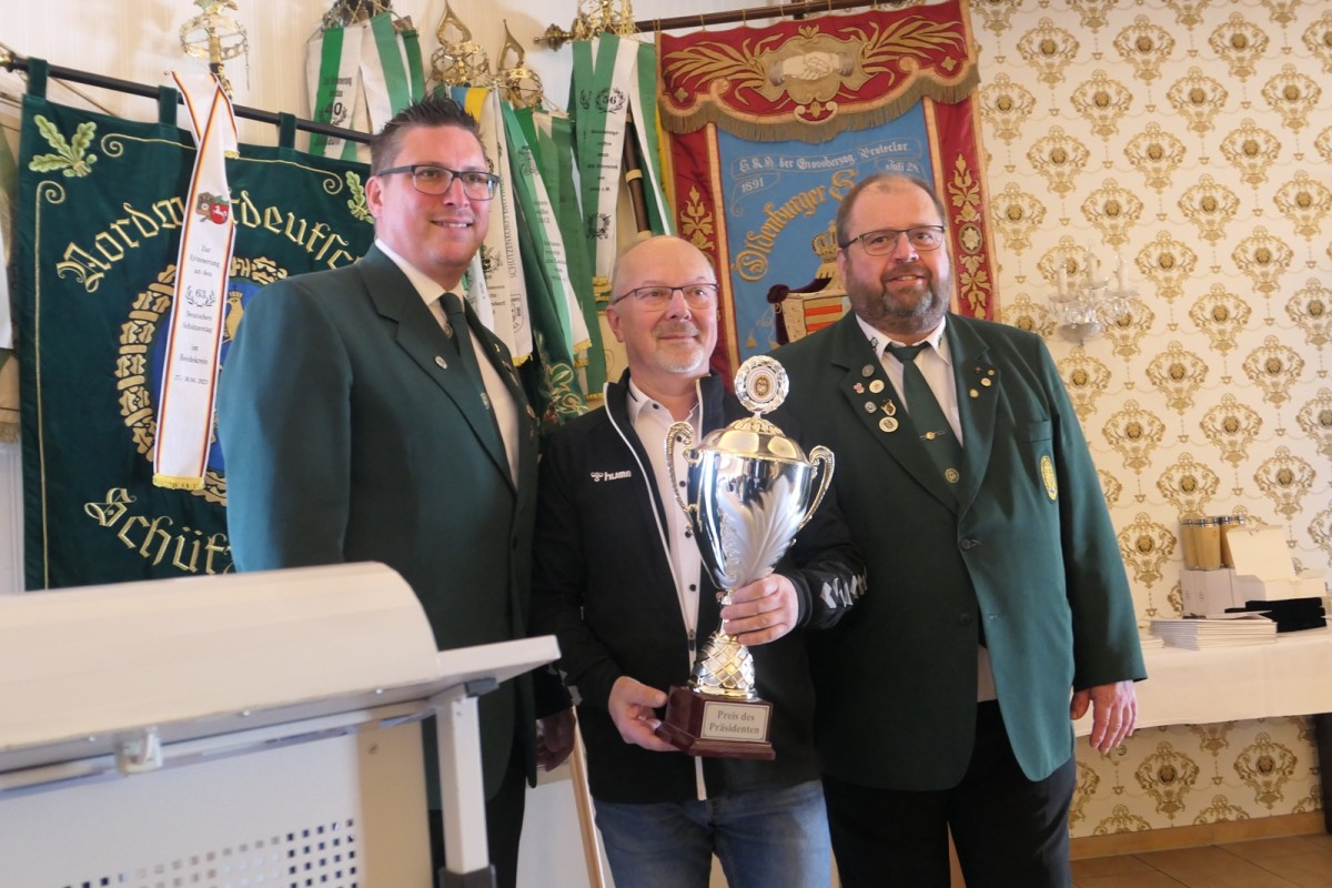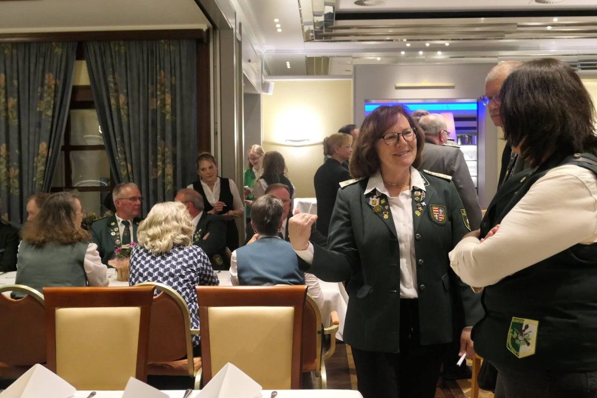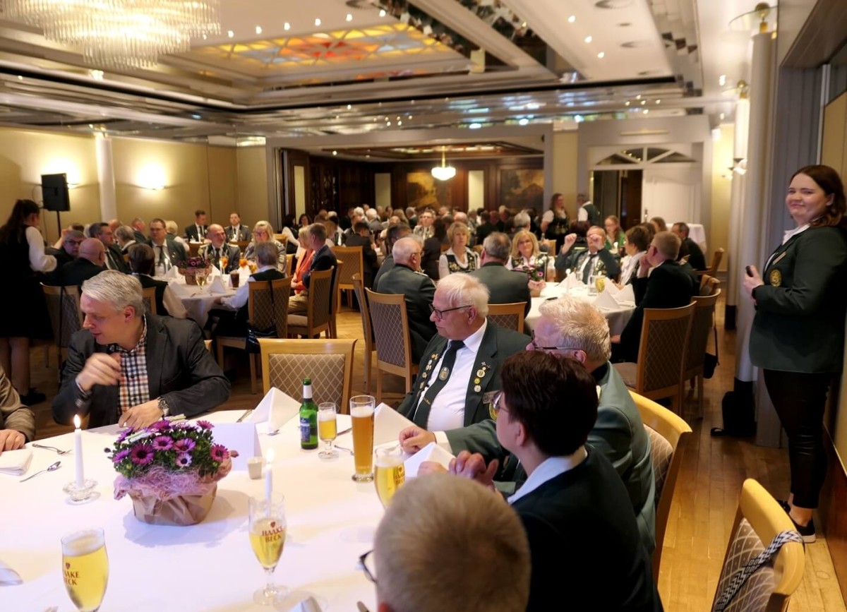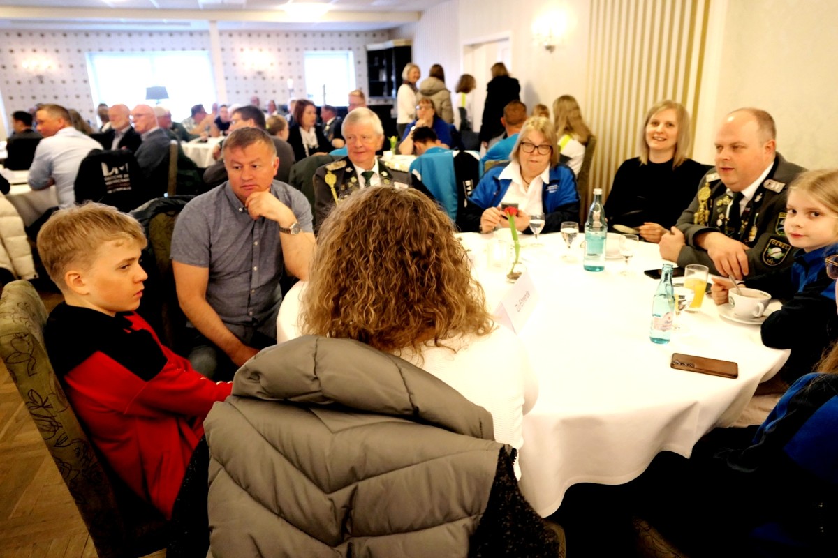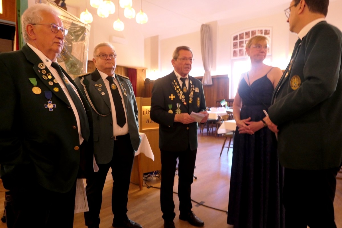 Als letzte wurden die Organisatoren des 72. Landesschützentages auf die "Bühne" gebeten und geehrt. Sie alle erhielten als eine Erinnerung und Dank für ihre Arbeit, einen Trinkbecher mit NWDSB-Emblem versehen vom Geschäftsführer Volker Kächele. Von links: Bezirkspräsident Karl-Friedrich Scharrelmann, Ulrich Ehlers, Friedel Kelkenberg, Thomas Nowak, Britta Löhmann, Lena Löhmann, Bianca Meyer, Marianne Vallan u. Siegfried Brockmann.