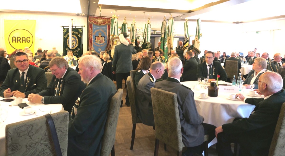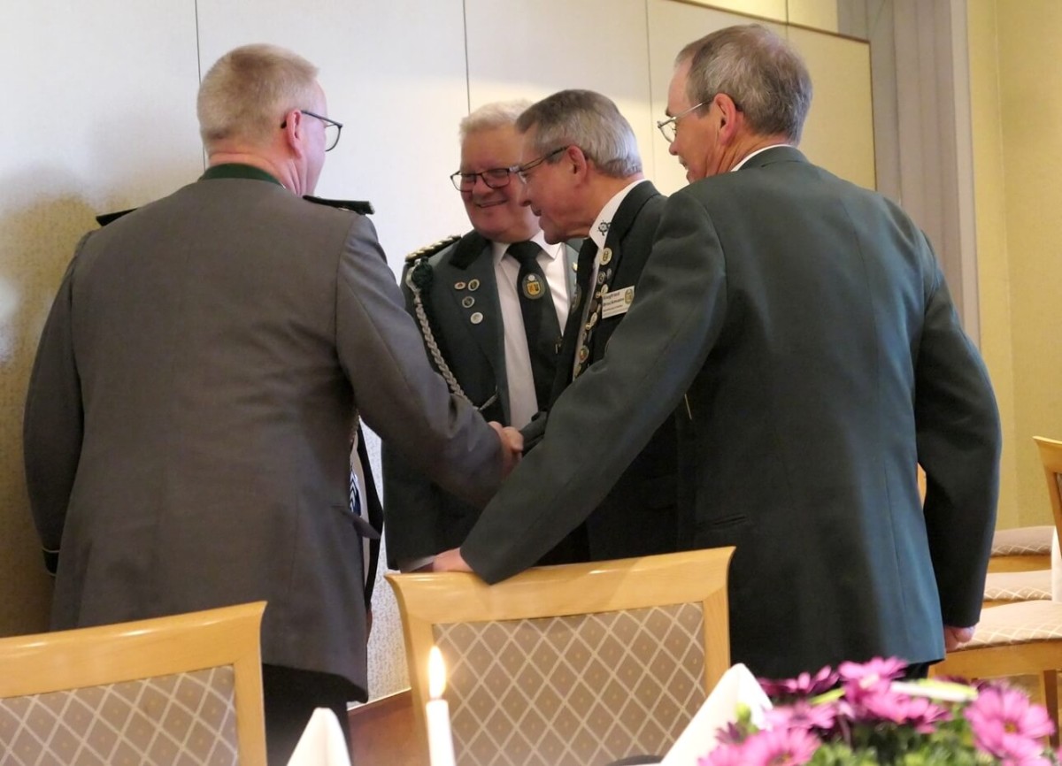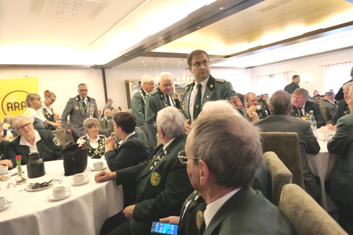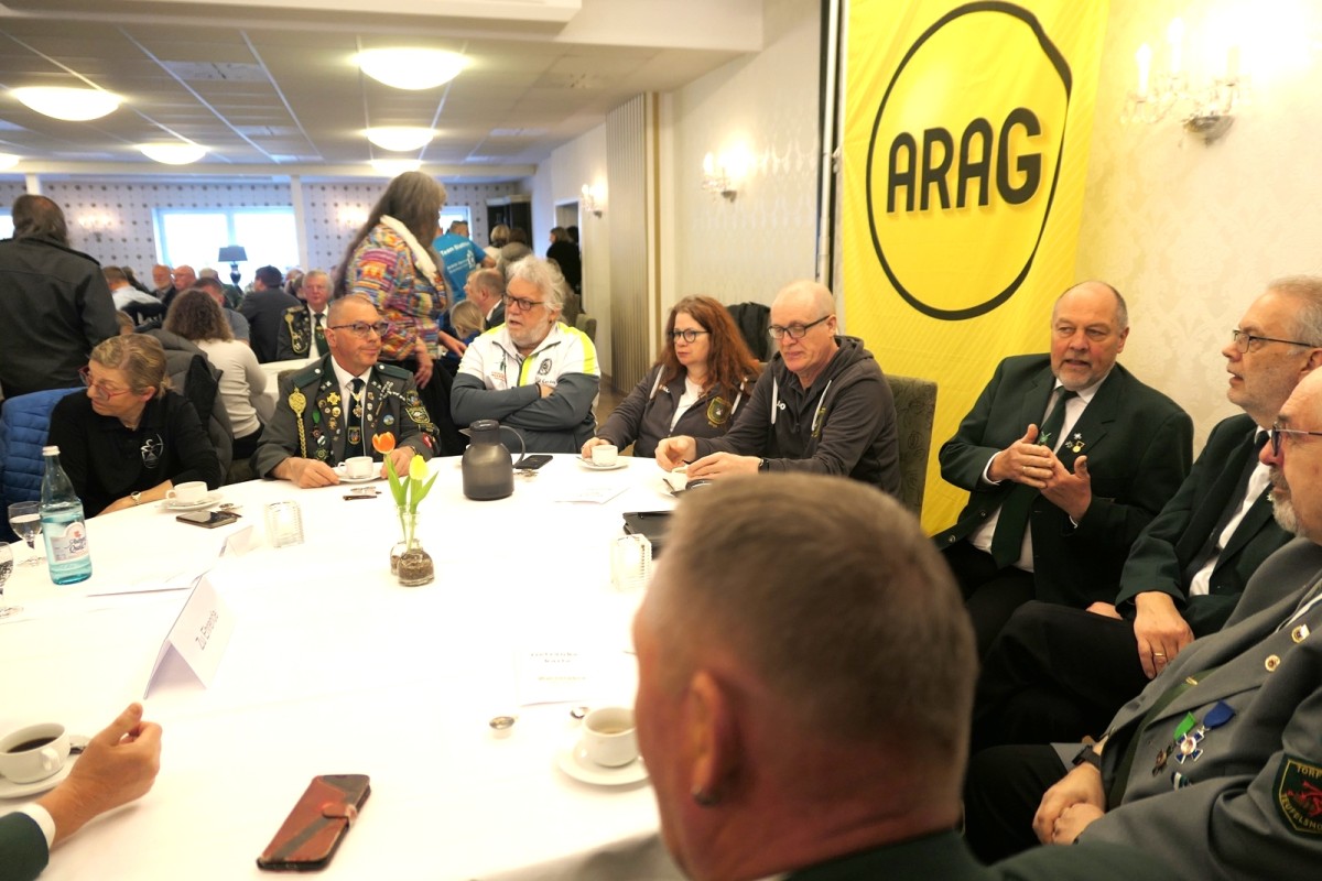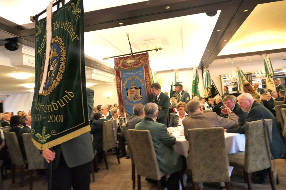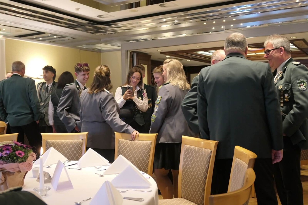 Als letzte wurden die Organisatoren des 72. Landesschützentages auf die "Bühne" gebeten und geehrt. Sie alle erhielten als eine Erinnerung und Dank für ihre Arbeit, einen Trinkbecher mit NWDSB-Emblem versehen vom Geschäftsführer Volker Kächele. Von links: Bezirkspräsident Karl-Friedrich Scharrelmann, Ulrich Ehlers, Friedel Kelkenberg, Thomas Nowak, Britta Löhmann, Lena Löhmann, Bianca Meyer, Marianne Vallan u. Siegfried Brockmann.