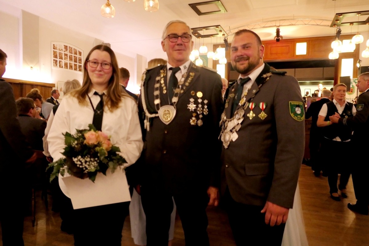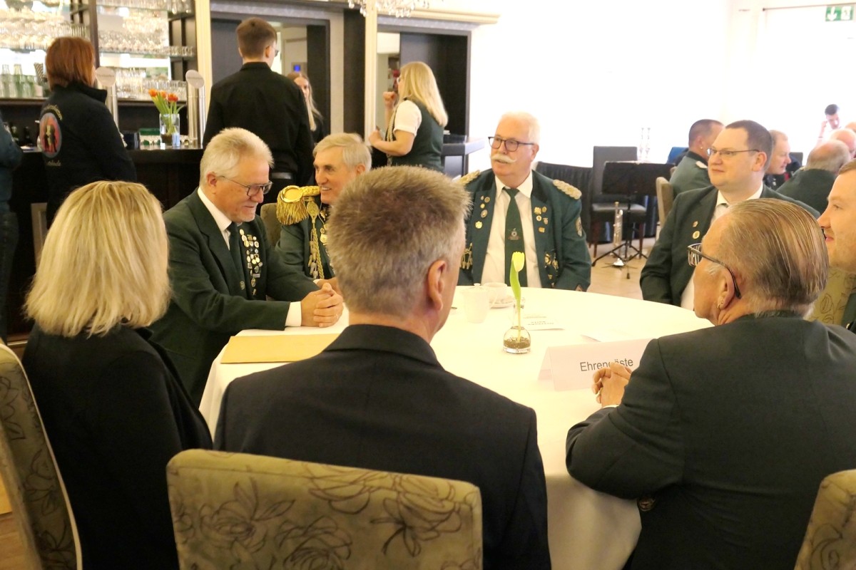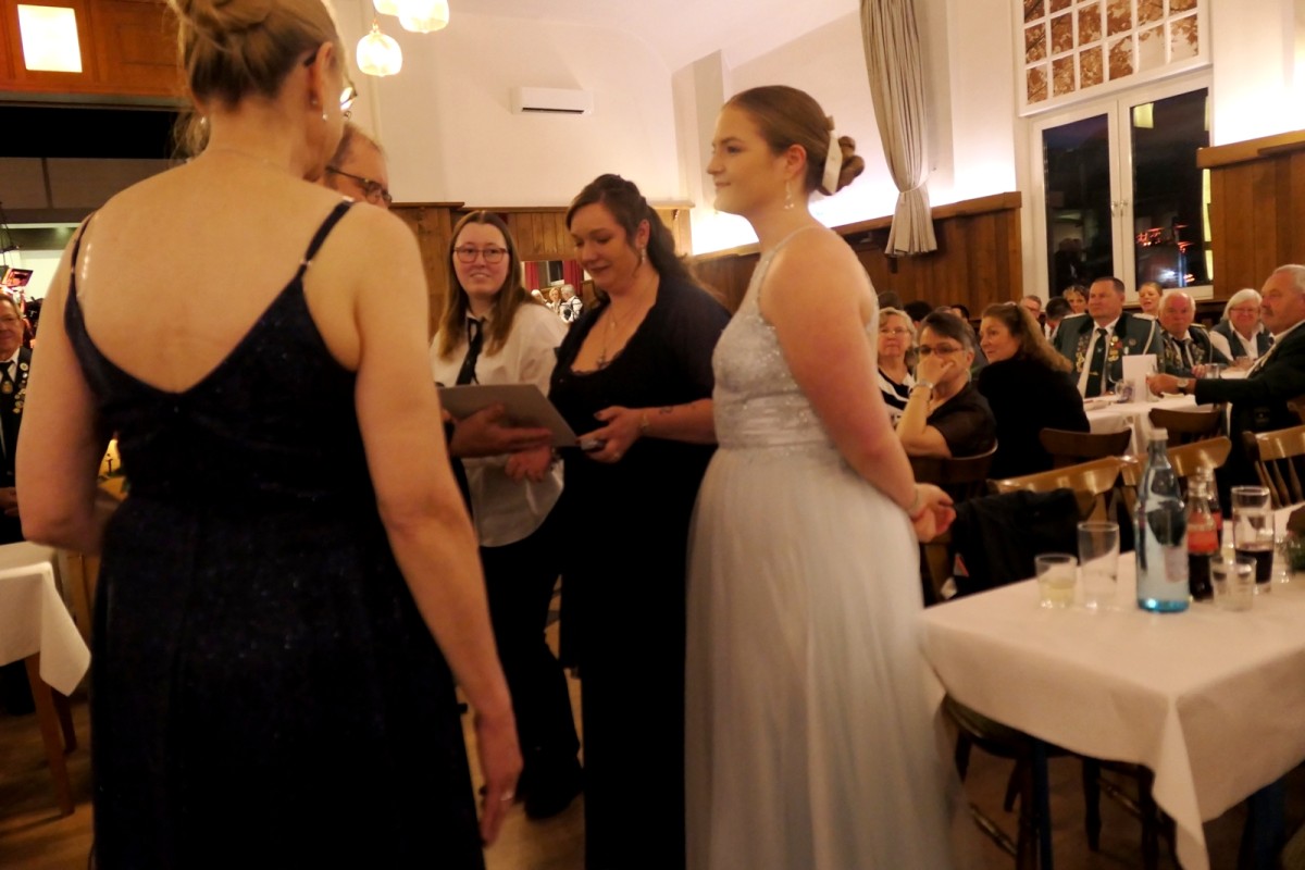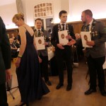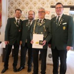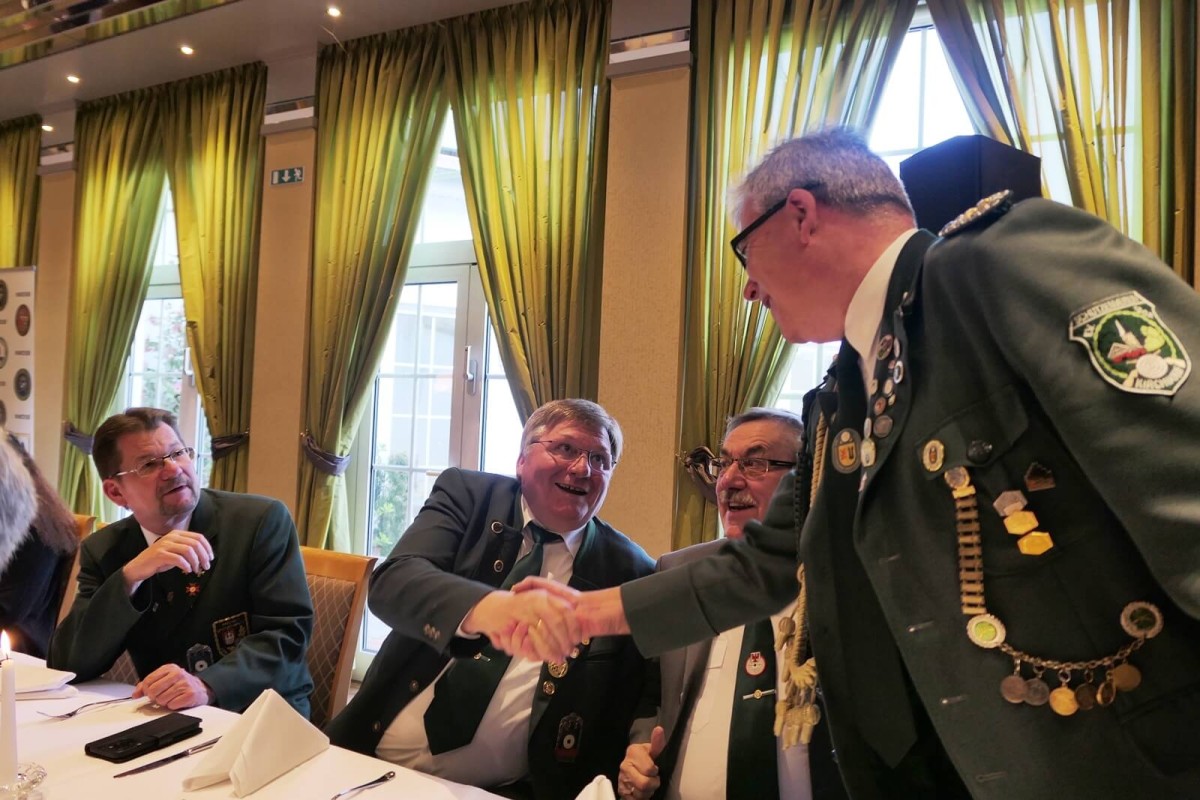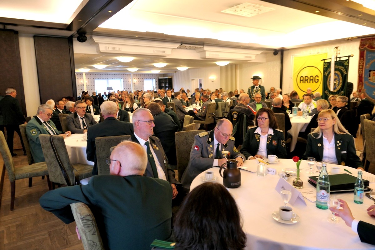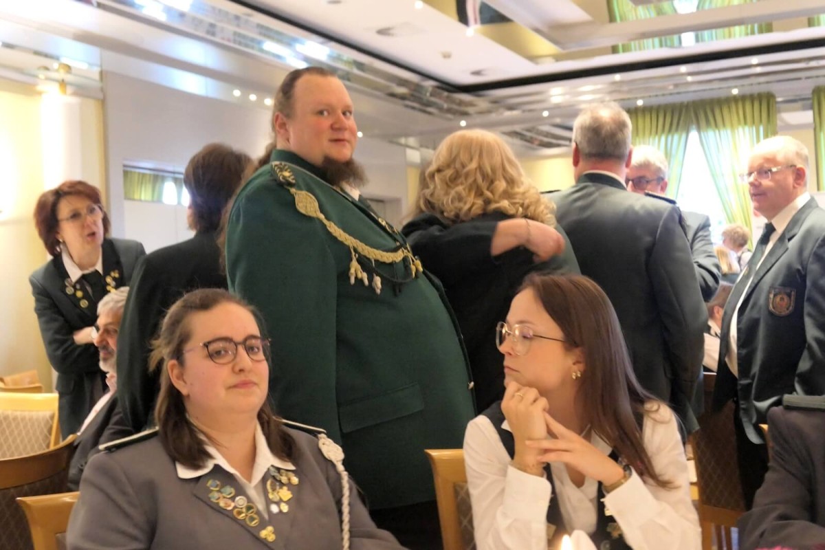 Als letzte wurden die Organisatoren des 72. Landesschützentages auf die "Bühne" gebeten und geehrt. Sie alle erhielten als eine Erinnerung und Dank für ihre Arbeit, einen Trinkbecher mit NWDSB-Emblem versehen vom Geschäftsführer Volker Kächele. Von links: Bezirkspräsident Karl-Friedrich Scharrelmann, Ulrich Ehlers, Friedel Kelkenberg, Thomas Nowak, Britta Löhmann, Lena Löhmann, Bianca Meyer, Marianne Vallan u. Siegfried Brockmann.