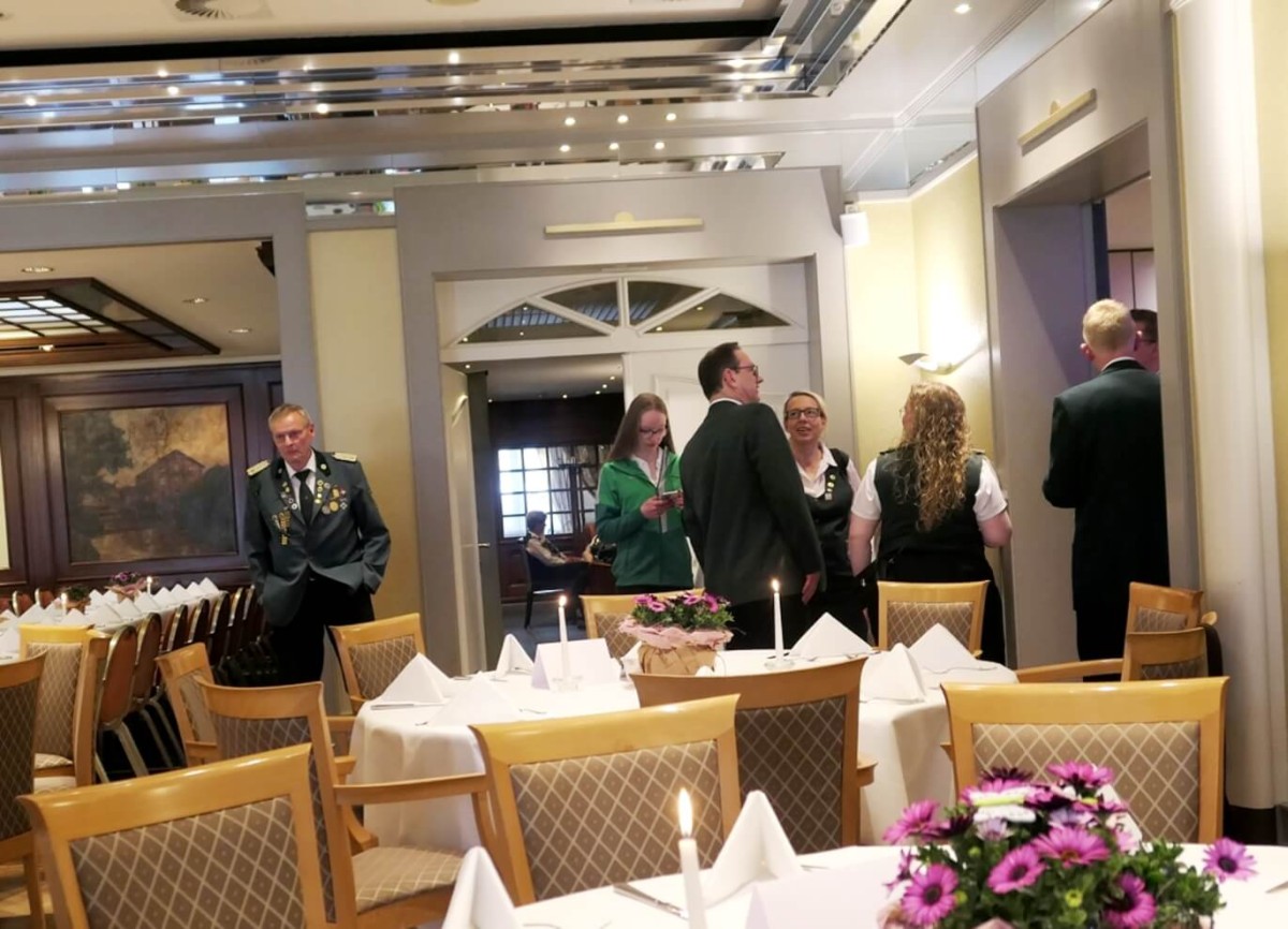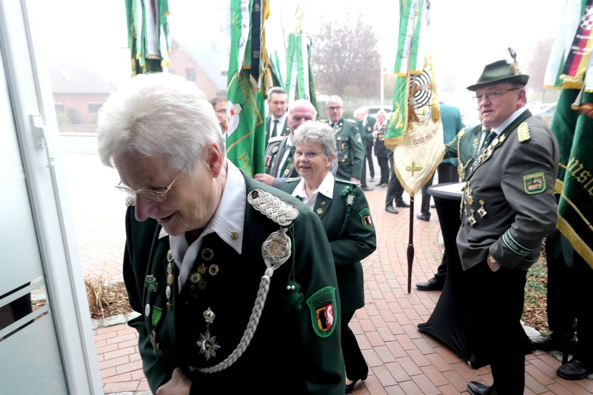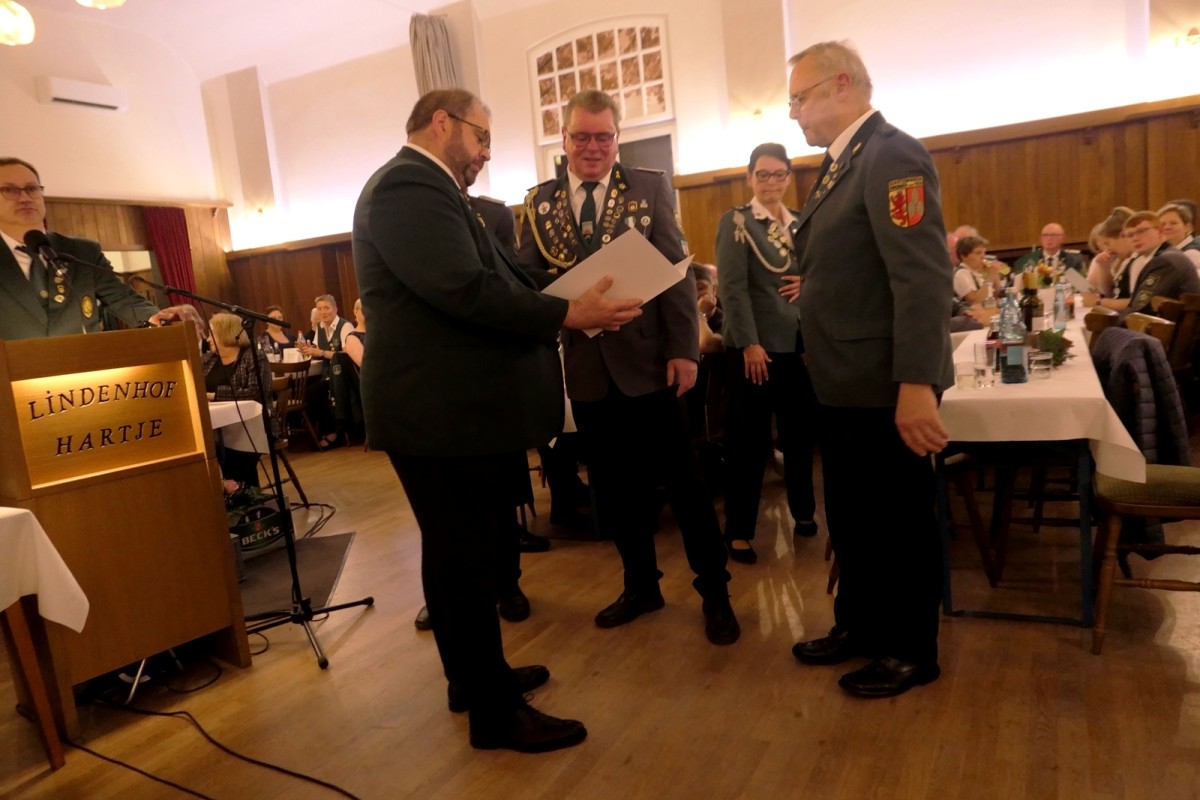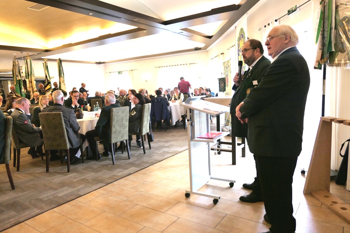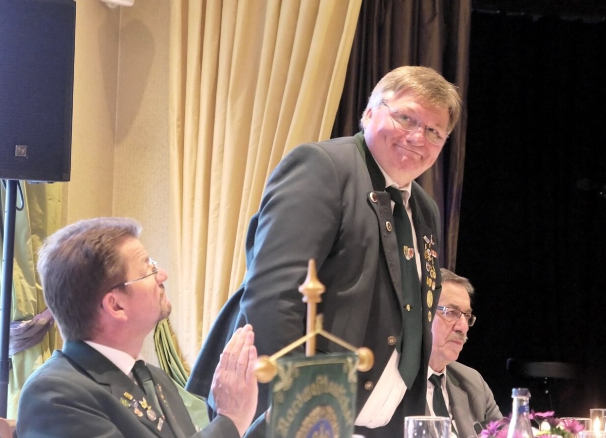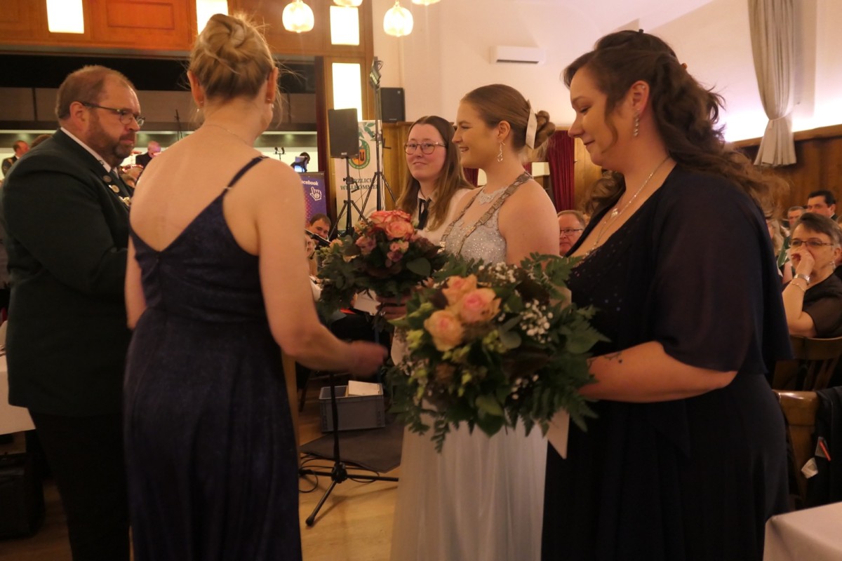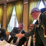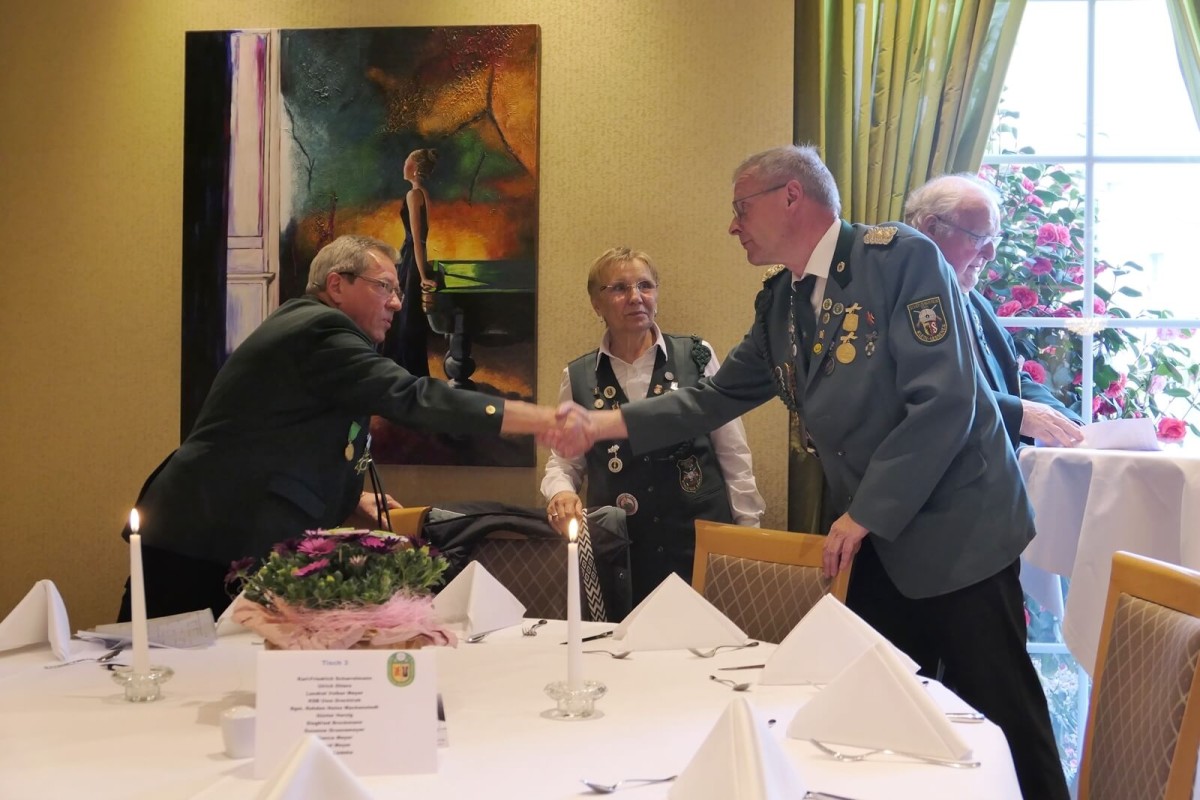 Als letzte wurden die Organisatoren des 72. Landesschützentages auf die "Bühne" gebeten und geehrt. Sie alle erhielten als eine Erinnerung und Dank für ihre Arbeit, einen Trinkbecher mit NWDSB-Emblem versehen vom Geschäftsführer Volker Kächele. Von links: Bezirkspräsident Karl-Friedrich Scharrelmann, Ulrich Ehlers, Friedel Kelkenberg, Thomas Nowak, Britta Löhmann, Lena Löhmann, Bianca Meyer, Marianne Vallan u. Siegfried Brockmann.