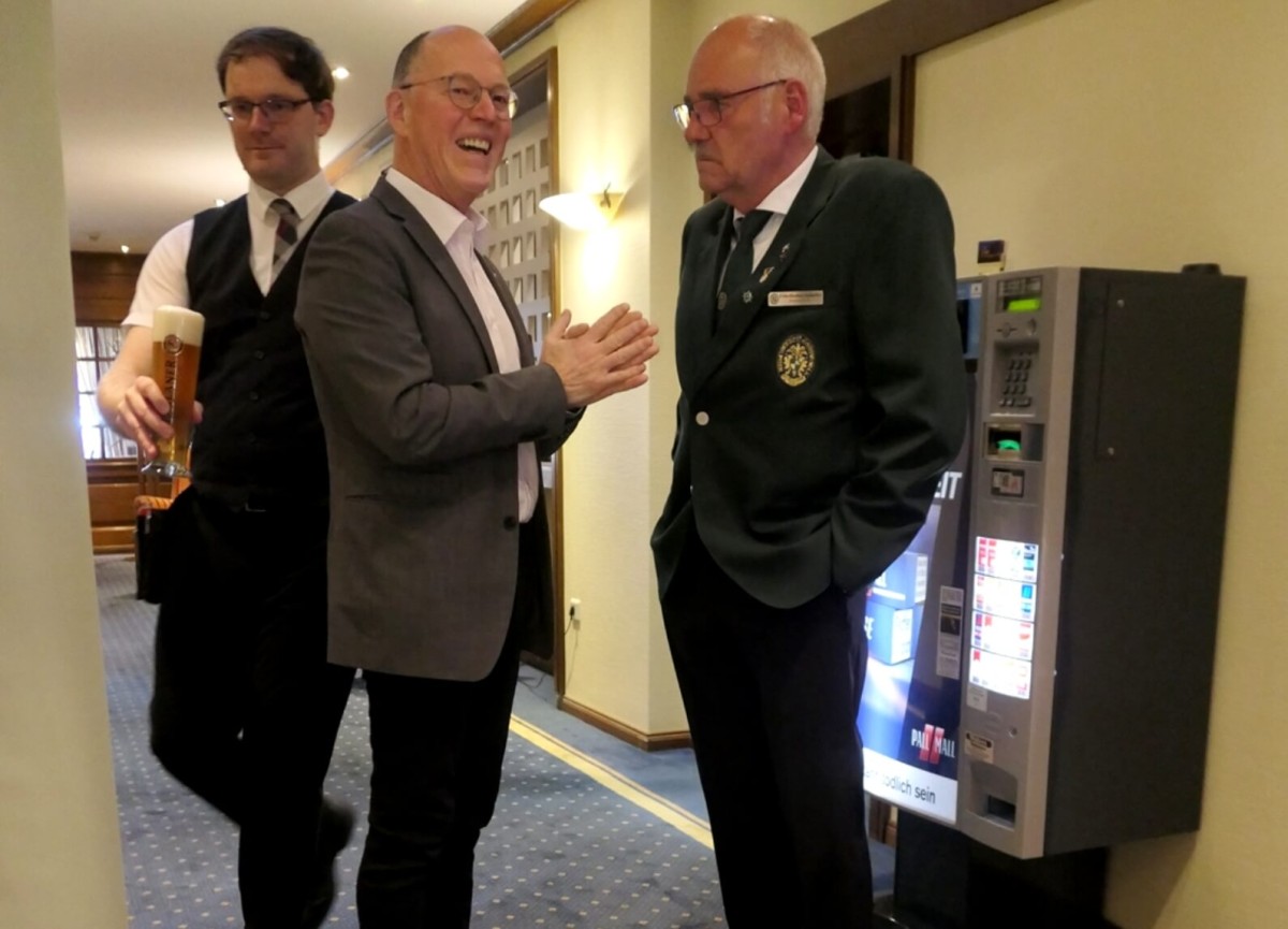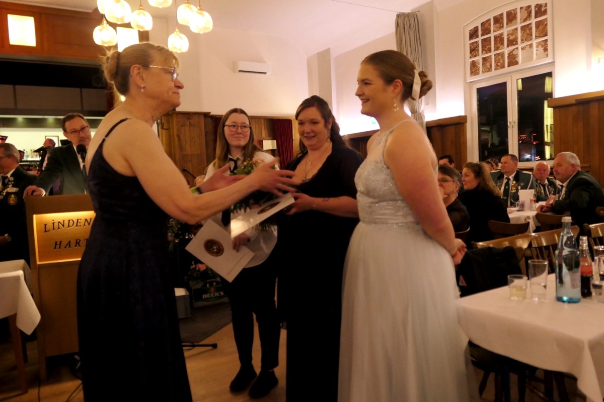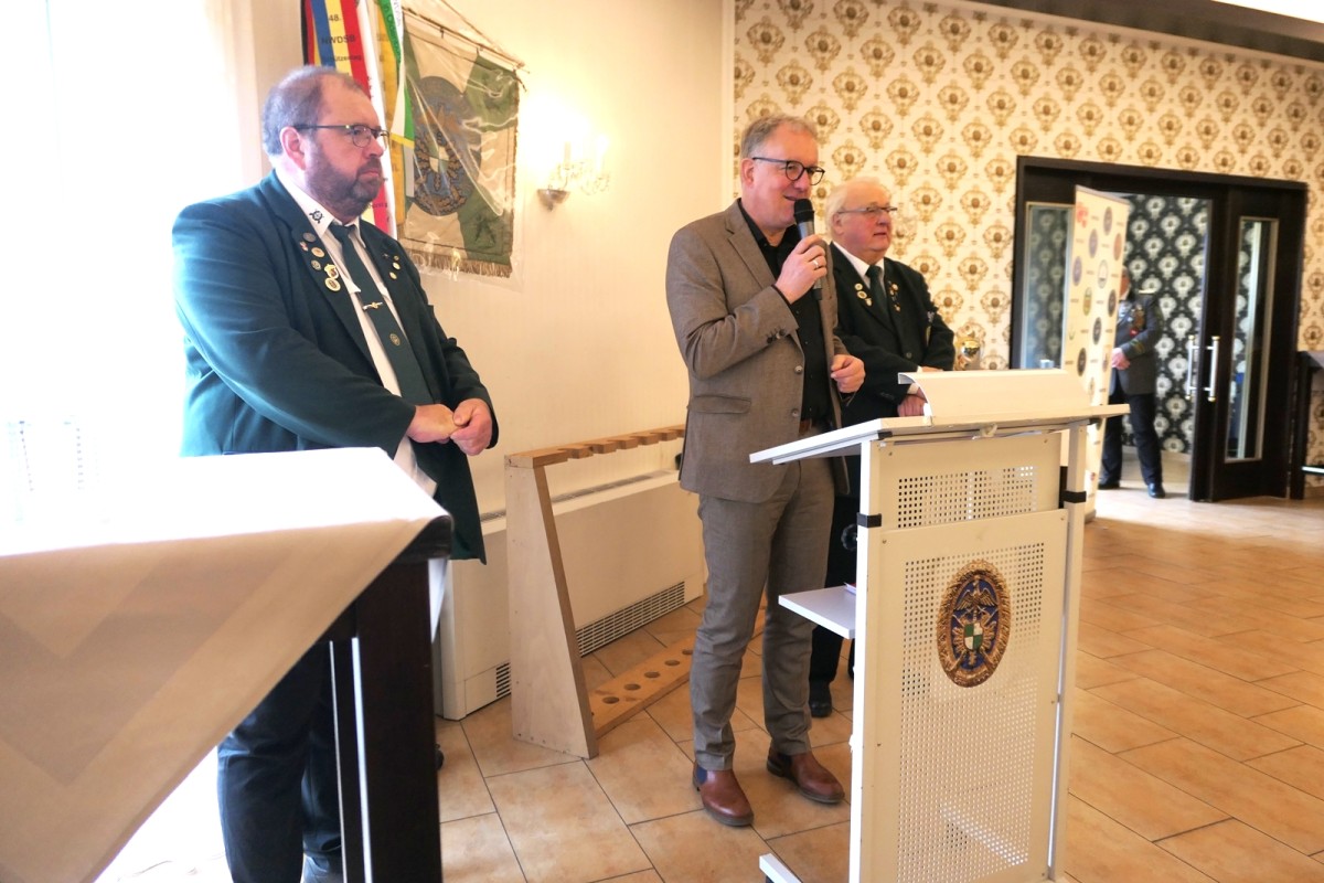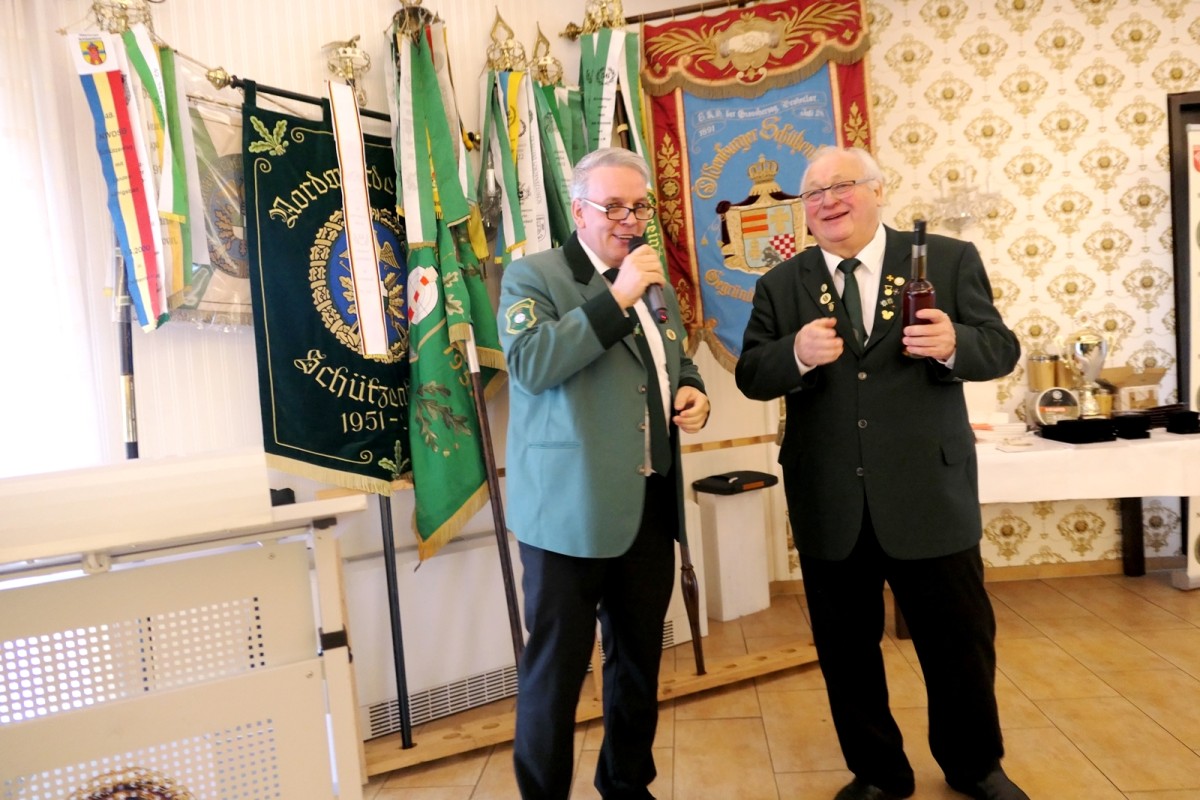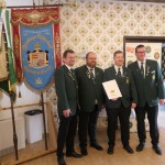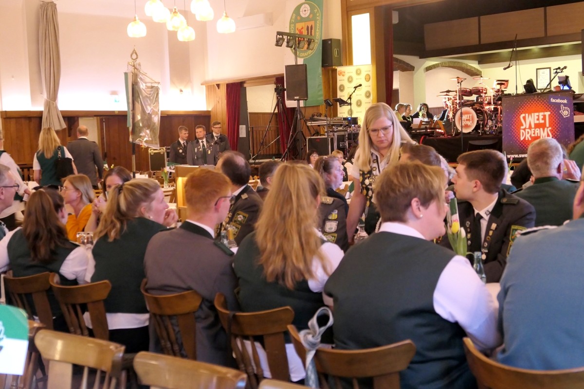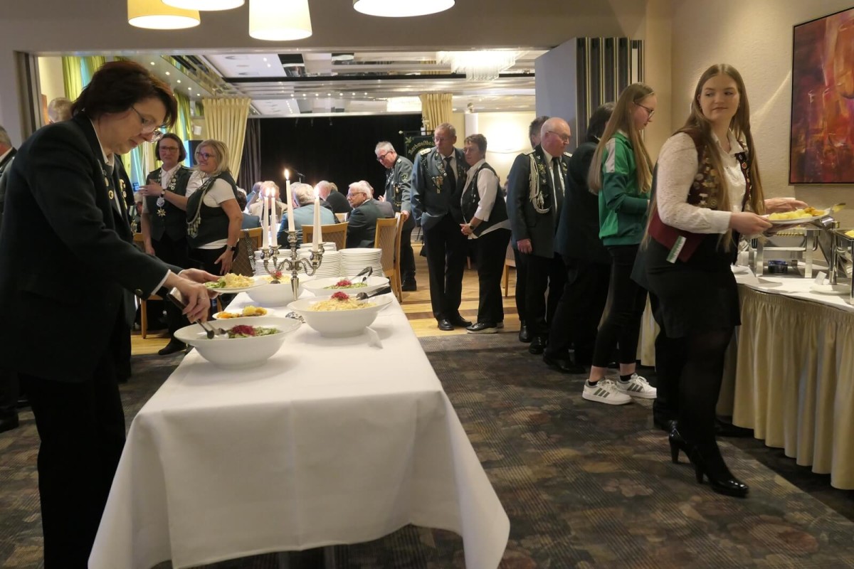 Als letzte wurden die Organisatoren des 72. Landesschützentages auf die "Bühne" gebeten und geehrt. Sie alle erhielten als eine Erinnerung und Dank für ihre Arbeit, einen Trinkbecher mit NWDSB-Emblem versehen vom Geschäftsführer Volker Kächele. Von links: Bezirkspräsident Karl-Friedrich Scharrelmann, Ulrich Ehlers, Friedel Kelkenberg, Thomas Nowak, Britta Löhmann, Lena Löhmann, Bianca Meyer, Marianne Vallan u. Siegfried Brockmann.