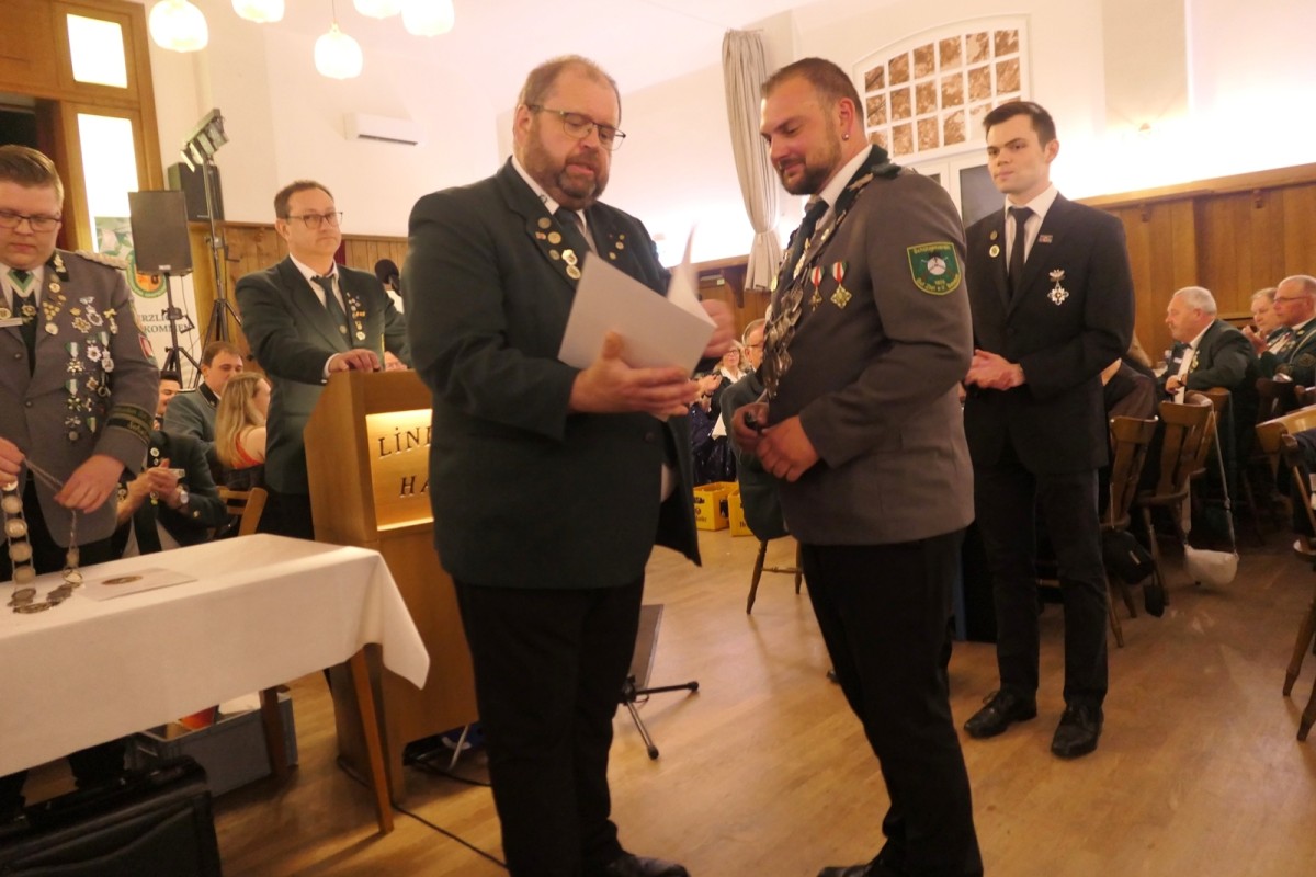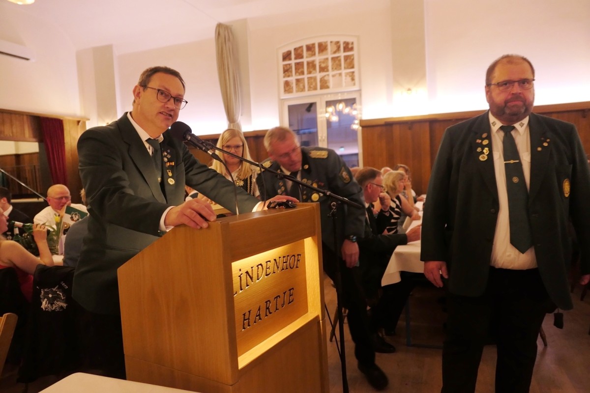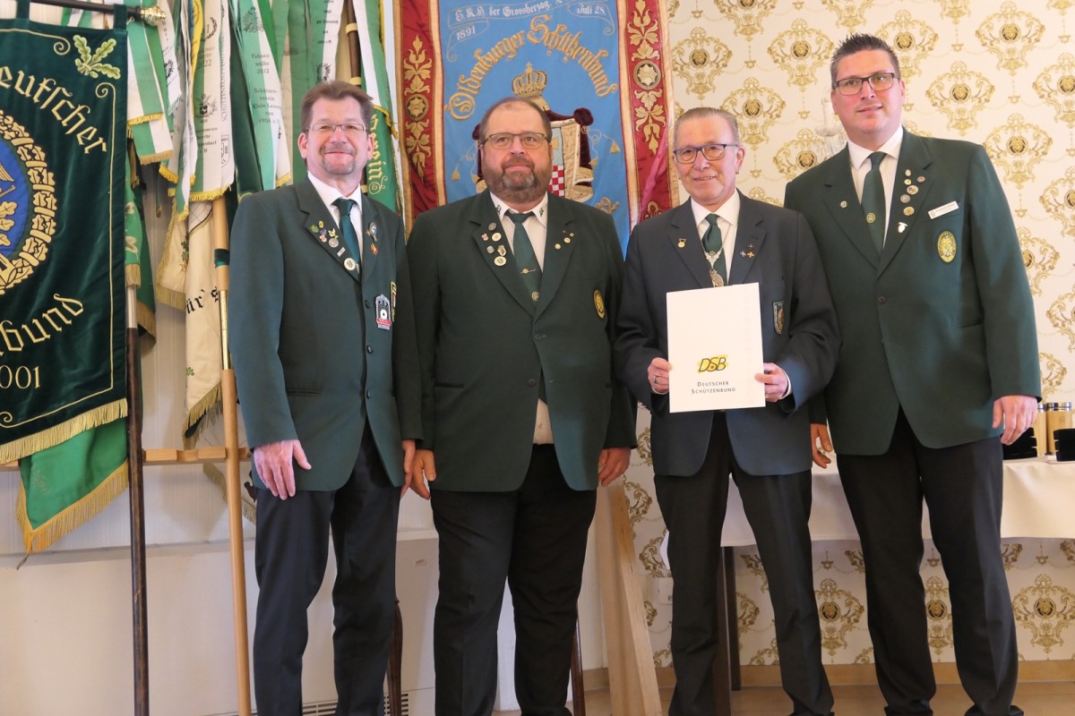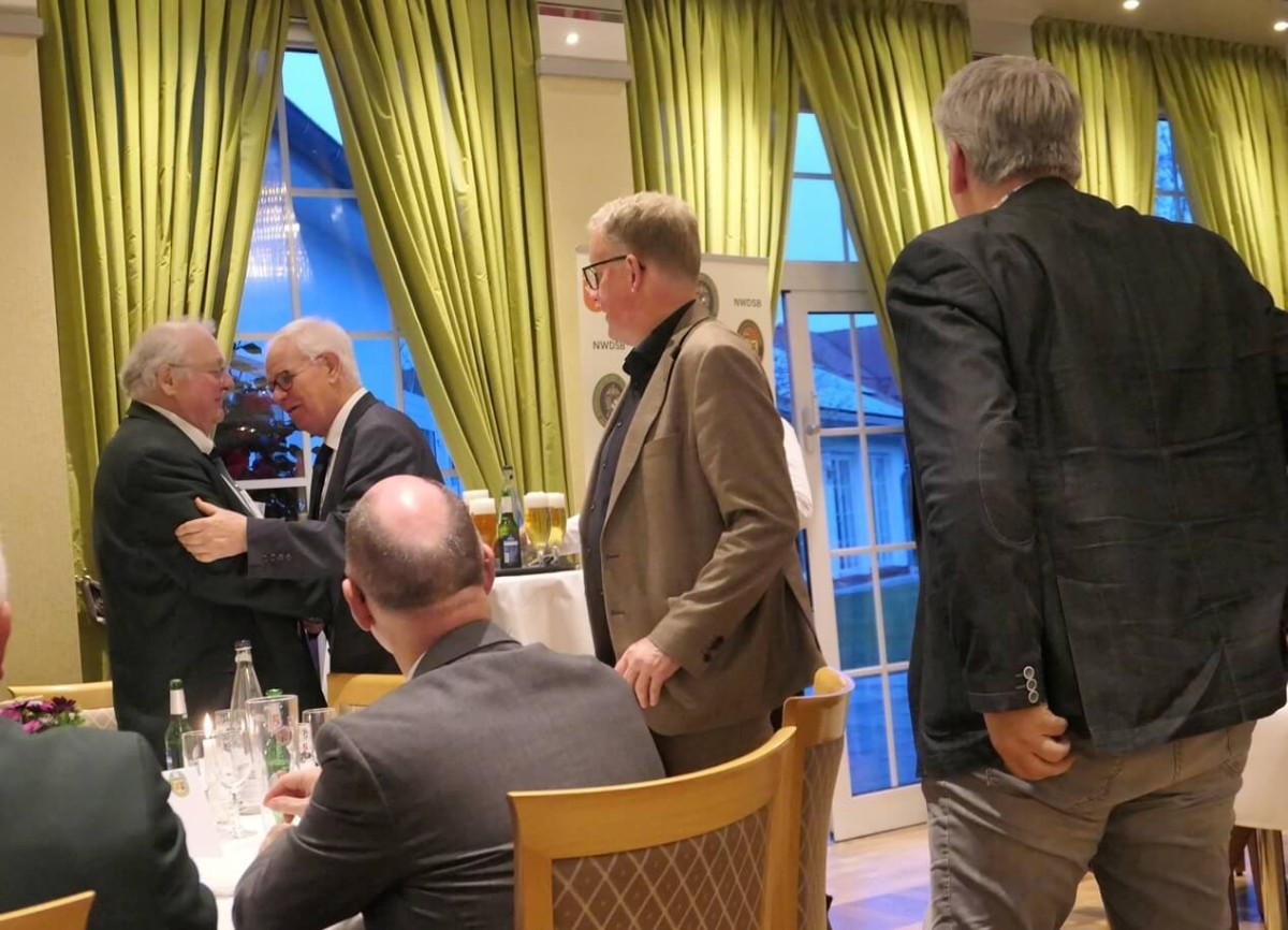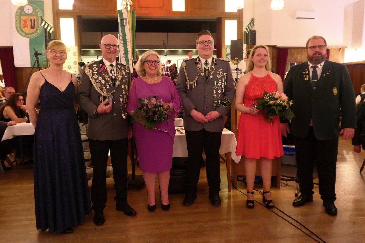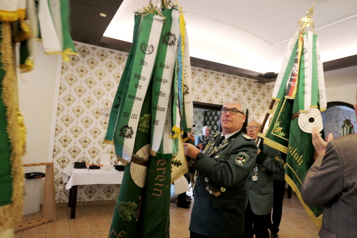 Als letzte wurden die Organisatoren des 72. Landesschützentages auf die "Bühne" gebeten und geehrt. Sie alle erhielten als eine Erinnerung und Dank für ihre Arbeit, einen Trinkbecher mit NWDSB-Emblem versehen vom Geschäftsführer Volker Kächele. Von links: Bezirkspräsident Karl-Friedrich Scharrelmann, Ulrich Ehlers, Friedel Kelkenberg, Thomas Nowak, Britta Löhmann, Lena Löhmann, Bianca Meyer, Marianne Vallan u. Siegfried Brockmann.